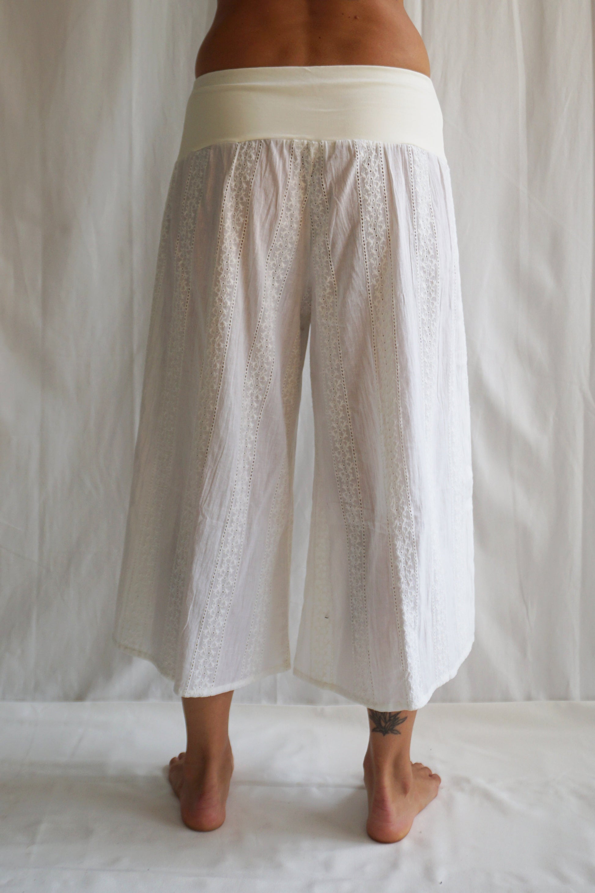 Lightweight and breathable wide-leg pants made from soft cotton. Featuring a comfortable stretch waistband and a flowing cropped silhouette.